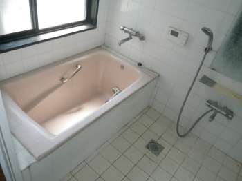| こちらは変わって浴室施工前のお写真です。 タイル張りのお風呂は全体的に寒い印象を受けてしまいます。 |