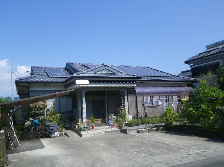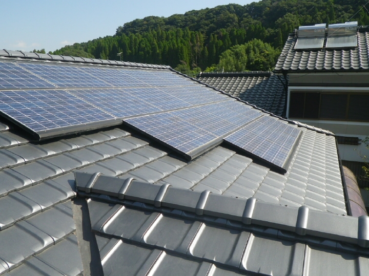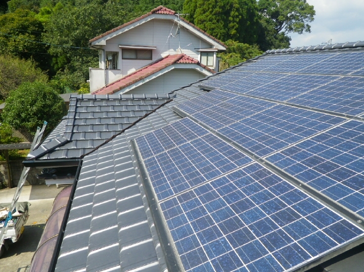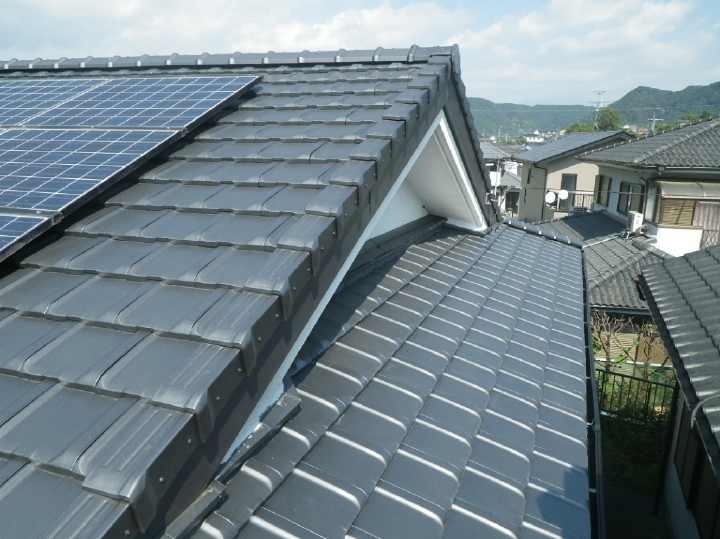 | こちらが施工後のお写真です。 太陽光パネルも載せ替えられ、美しい屋根へとリフォームが完了いたしました。 |